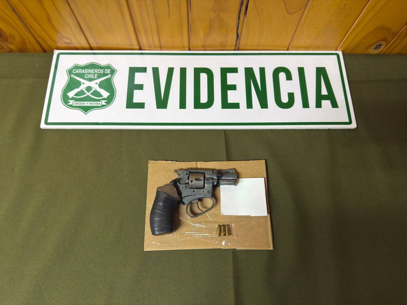 El revólver incautado corresponde a un arma marca Ítalo GRA, de origen argentino, cuyo número de serie se encontraba borrado. La evidencia fue remitida al Laboratorio de Criminalística de Carabineros (Labocar) para realizar los peritajes correspondientes.