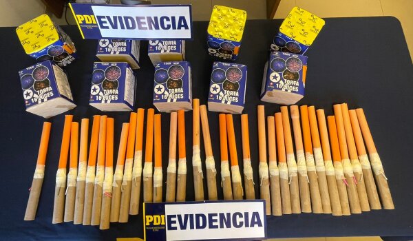 Con estos antecedentes, y previa coordinación con el fiscal de turno, personal de la PDI realizó una entrada y registro voluntaria al domicilio, procedimiento que contó con la autorización del padre del joven. En el lugar se incautaron diversos artefactos pirotécnicos, además de un teléfono celular utilizado para la venta de las especies.