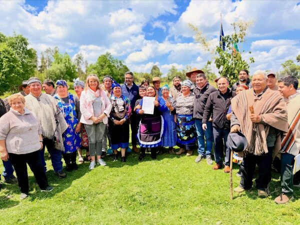 Durante la actividad, la presidenta de la comunidad, Valeria Llanquiman, junto al director nacional de la CONADI, suscribieron el documento que oficializa el inicio del procedimiento para reparar pérdidas históricas que han afectado a la comunidad por generaciones.