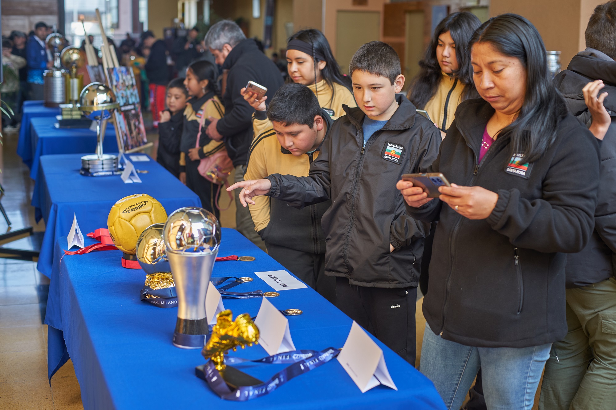 Uno de los momentos más emotivos fue la visita de escolares de sectores urbanos y rurales, quienes recorrieron la muestra con entusiasmo y admiración. Antu Salas, estudiante de la Escuela Municipal Nº1 de Lautaro, compartió su emoción. “La Copa del Mundo es la que más me gustó porque es súper perfecta. Además, conocer la Champions League o el Balón de Oro, que son difíciles de ver en persona, fue increíble. Estoy muy agradecido de que lo hayan traído acá”.