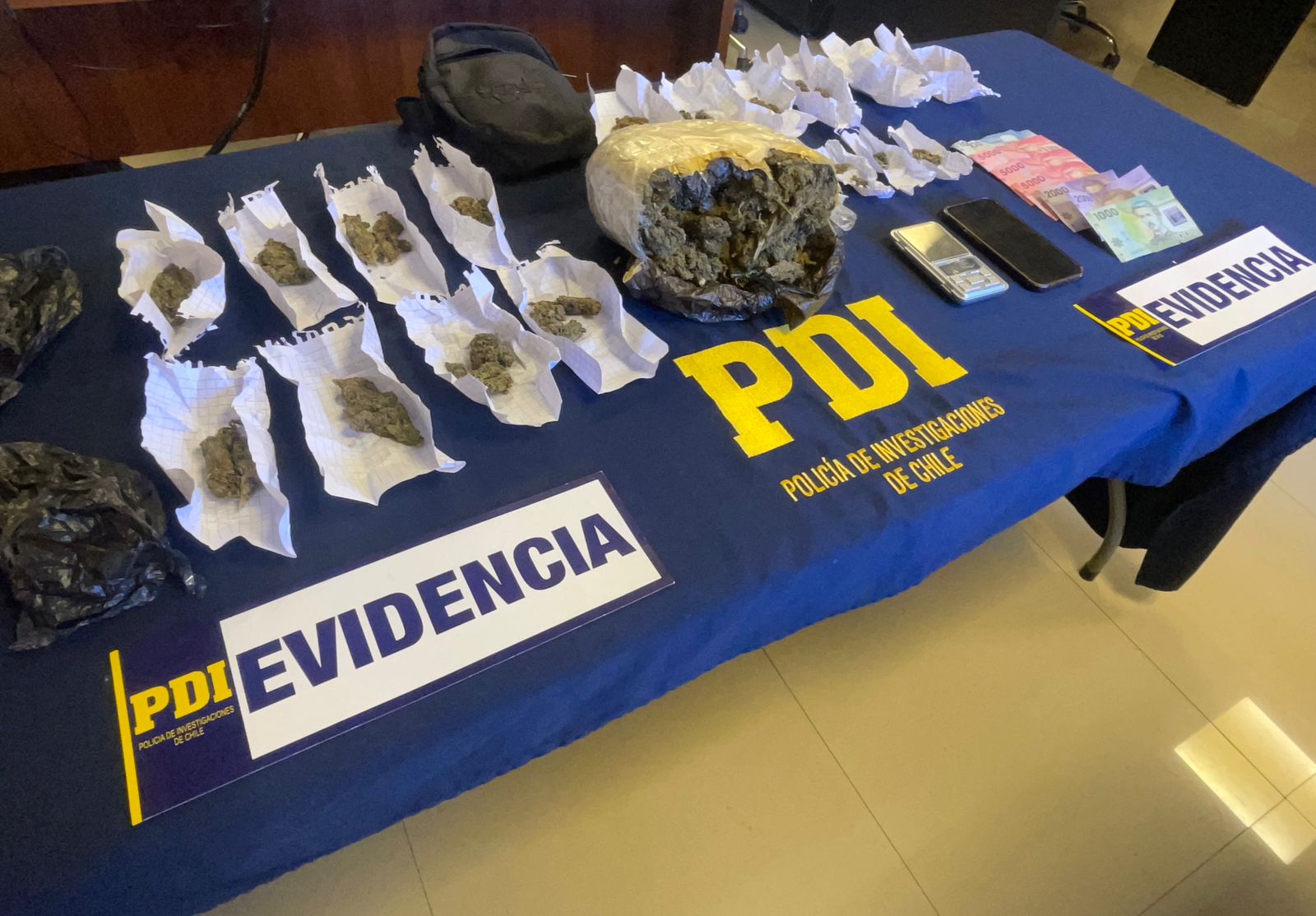 Con estos antecedentes, la PDI solicitó y obtuvo la respectiva orden de detención y de entrada y registro al inmueble, procedimiento en el cual se incautaron 809 gramos de cannabis sativa, equivalentes a 2.428 dosis, avaluadas en el mercado informal en aproximadamente 4 millones 800 mil pesos.