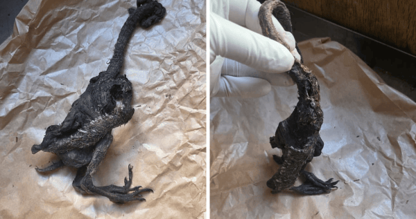 La fotografía causó una gran intriga al ser compartida por redes sociales y la describieron como el cadáver de una especie de color café, con patas alargadas, brazos largos con garras y una cola.