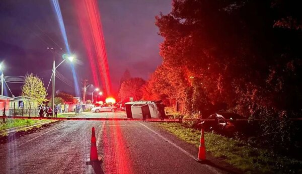El accidente ocurrió cerca de las 21:15 horas en la intersección de la Ruta R-300 con pasaje La Frutilla, donde una camioneta Toyota volcó tras impactar con un automóvil de la misma marca, modelo Yaris, el cual terminó en una zanja a un costado de la vía.